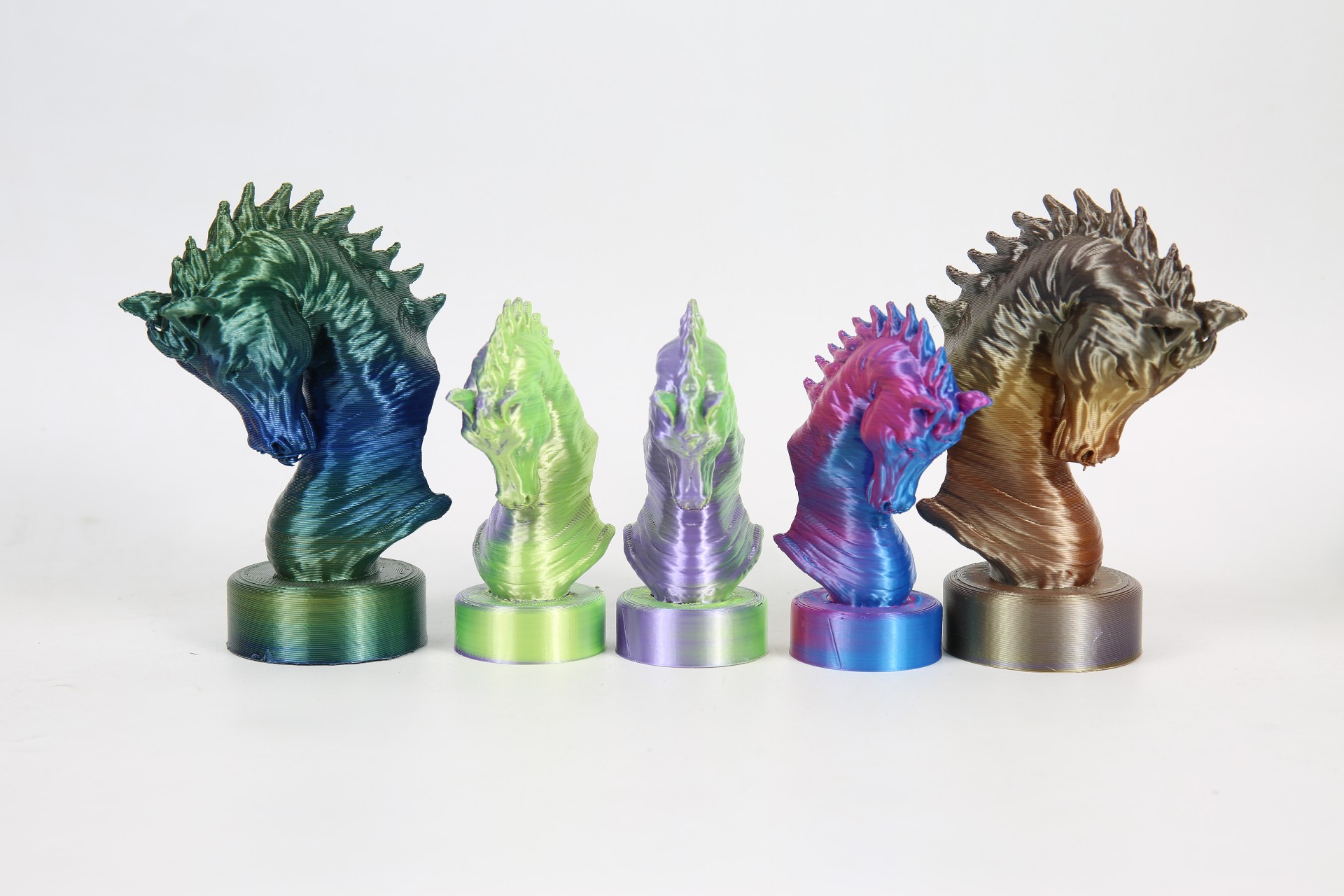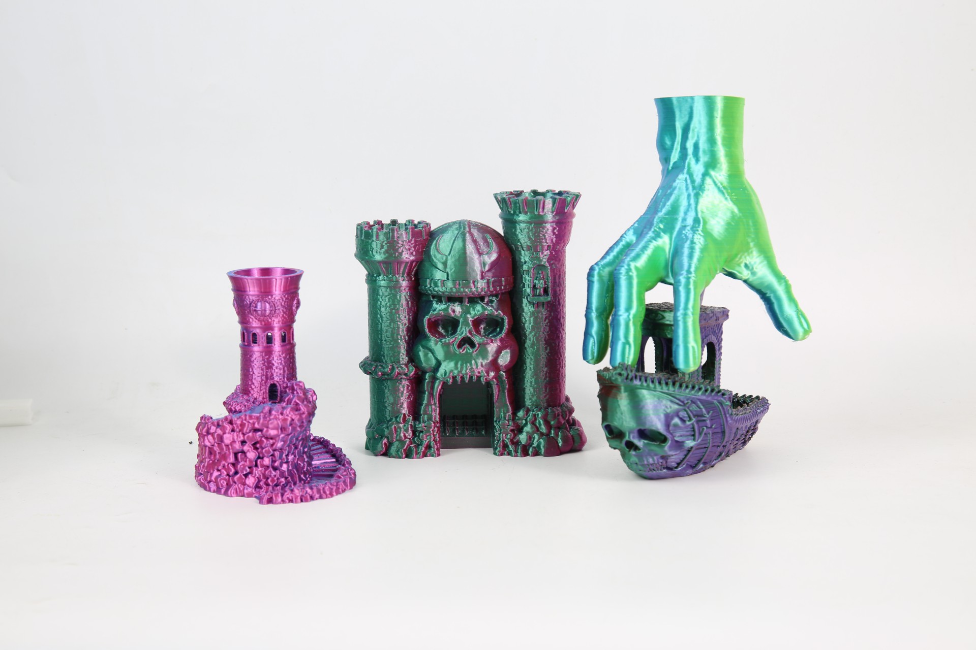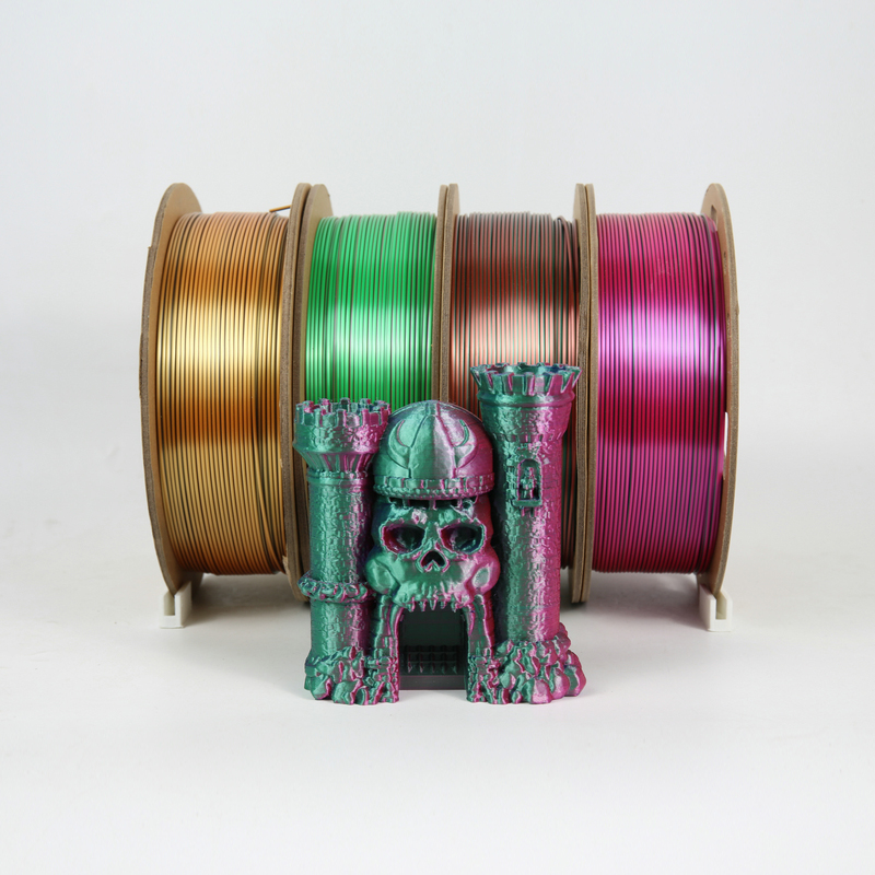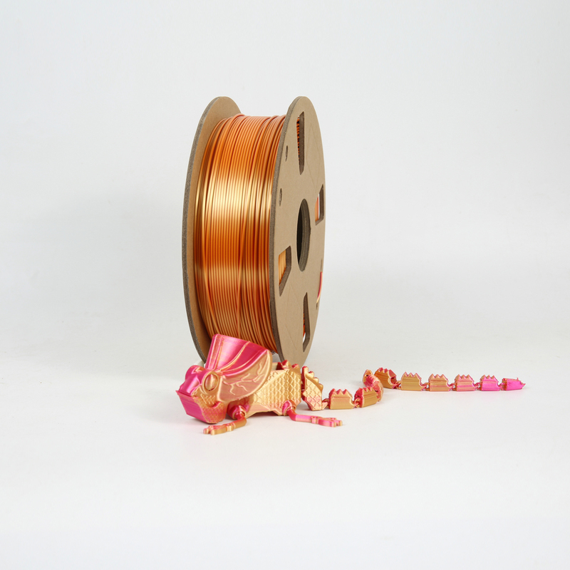 This magic color silk PLA is upgraded from silk PLA, has a gorgeous bi-color appreance,high toughness and